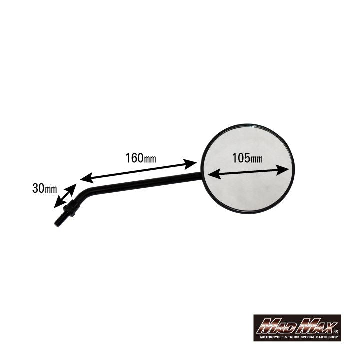 【マッドマックス MM04-0011-1BK 丸形ミラー 8mm ブラック 左右共通 汎用 1本入り バイク 鏡】