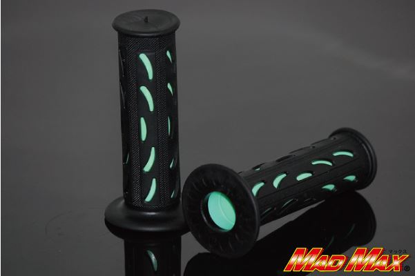 【マッドマックス MM05-0110GR ハンドルグリップ ウェーブタイプ 7/8インチハンドル用 グリーン 非貫通タイプ 汎用 バイク】