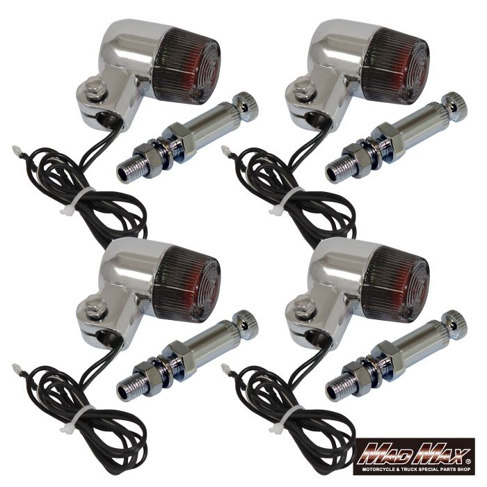 【マッドマックス MM11-0072-SM-2 丸型ミニヨーロピアンウインカー M10×76mm/取付ステー付 シルバー/スモーク 4個セット 汎用 ウィンカー 指示器 MADMAX】