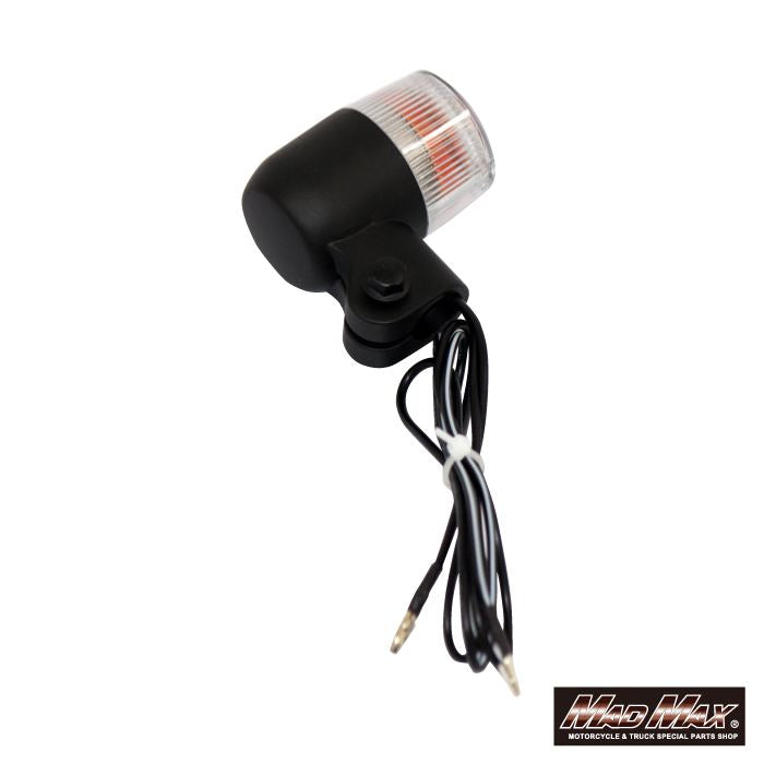 【マッドマックス MM11-0073-CL 丸型ミニヨーロピアンウインカー M10×76mm/取付ステー付 ブラック/クリア 2個セット 汎用 ウィンカー 指示器 パーツ MADMAX】