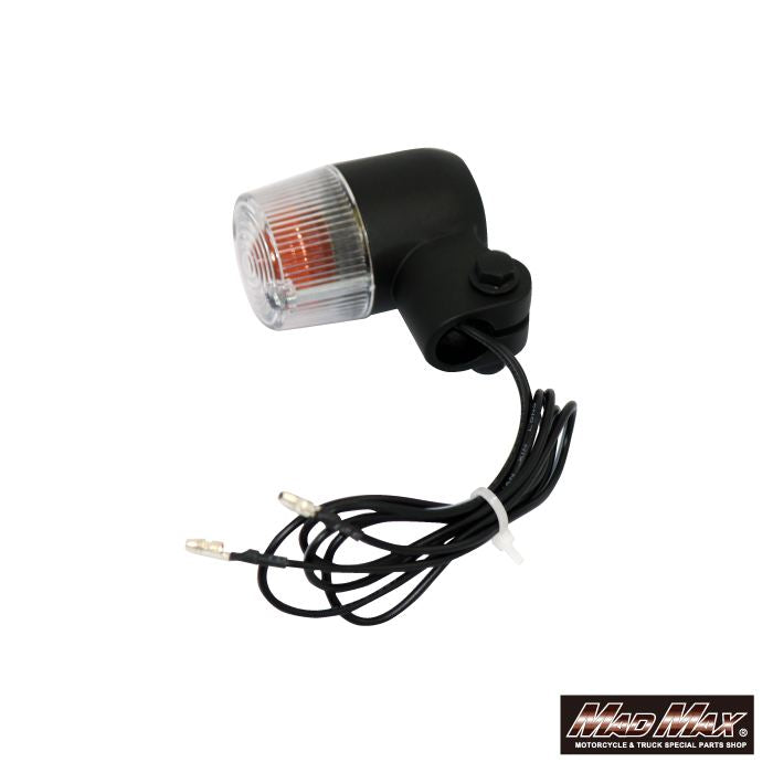 【マッドマックス MM11-0073-CL-2 丸型ミニヨーロピアンウインカー M10×76mm/取付ステー付 ブラック/クリア 4個セット 汎用 ウィンカー 指示器 パーツ MADMAX】