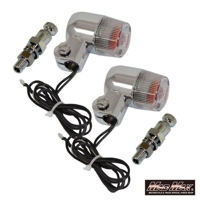 【マッドマックス MM11-0074-CL 丸型ミニヨーロピアンウインカー M10×60mm/取付ステー付 シルバー/クリア 2個セット 汎用 ウィンカー 指示器】