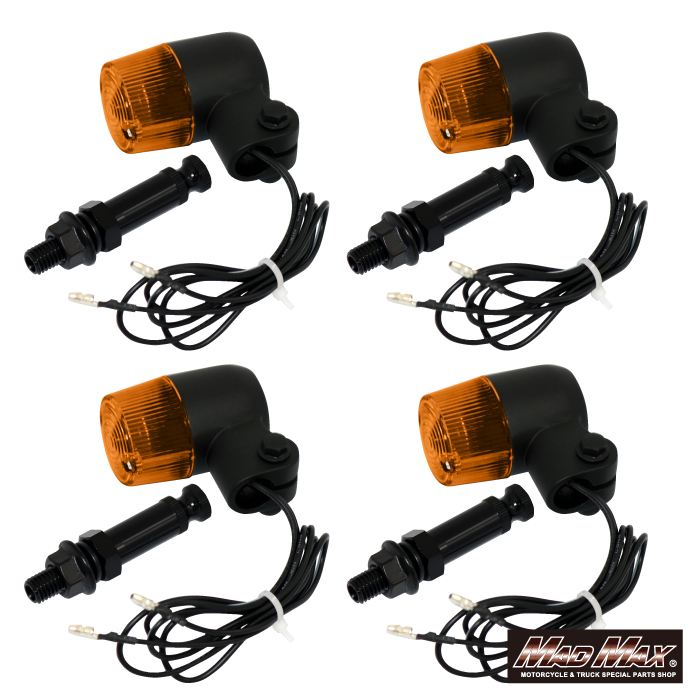 【マッドマックス MM11-0077-OR-2 丸型ミニヨーロピアンウインカー M10×73mm/アルミ製取付ステー付 ブラック/オレンジ 4個セット 汎用 ウィンカー 指示器】