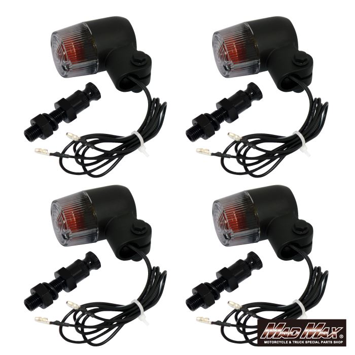 【マッドマックス MM11-0078-SM-2 丸型ミニヨーロピアンウインカー M10×60mm/アルミ製取付ステー付 ブラック/スモーク 4個セット 汎用 ウィンカー 指示器】