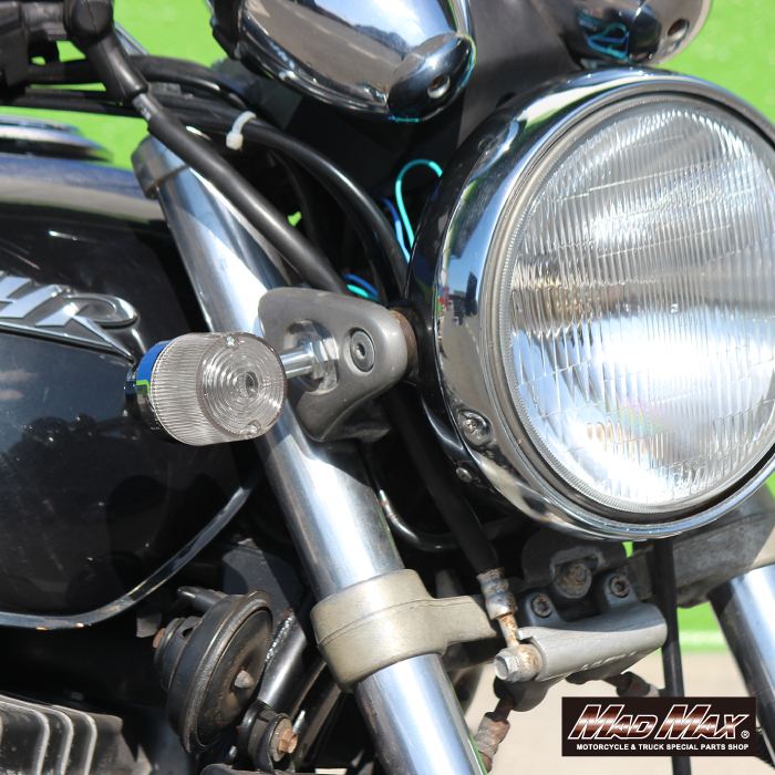 【マッドマックス MM11-0080-CL-2 丸型ヨーロピアンウインカー M10×73mm/アルミ取付ステー付 クリア 4個セット 汎用 ウィンカー 指示器 パーツ MADMAX】