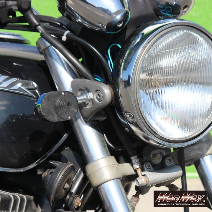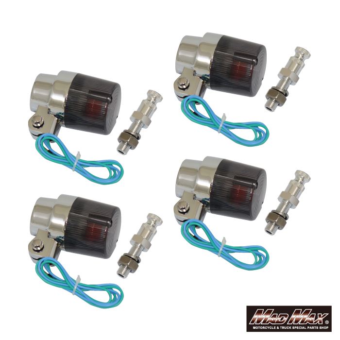 【マッドマックス MM11-0081-SM-2 丸型ヨーロピアンウインカー M10×60mm/アルミ取付ステー付 スモーク 4個セット 汎用 ウィンカー 指示器 パーツ MADMAX】