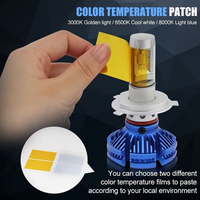 X3 H4 LEDヘッドライト Hi/Lo切替 25W 6000LM 防水 ブルー 2個セット 汎用(12V/24V兼用)