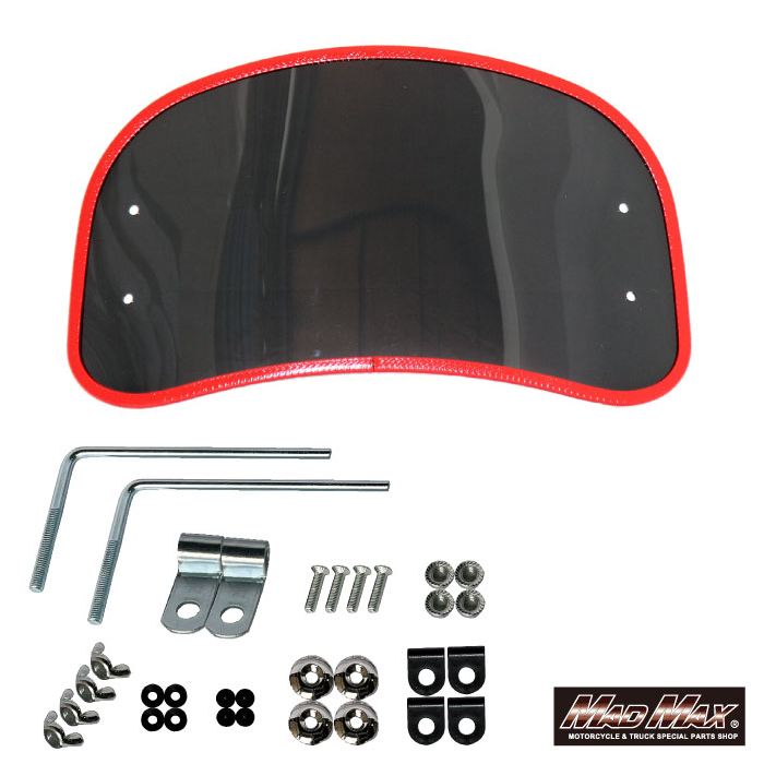 【マッドマックス MM19-0425-RD 風防ミドルサイズ スモーク/レッド 縦225×横415×厚み3mm 汎用 スクリーン シールド 防寒 外装 MADMAX】