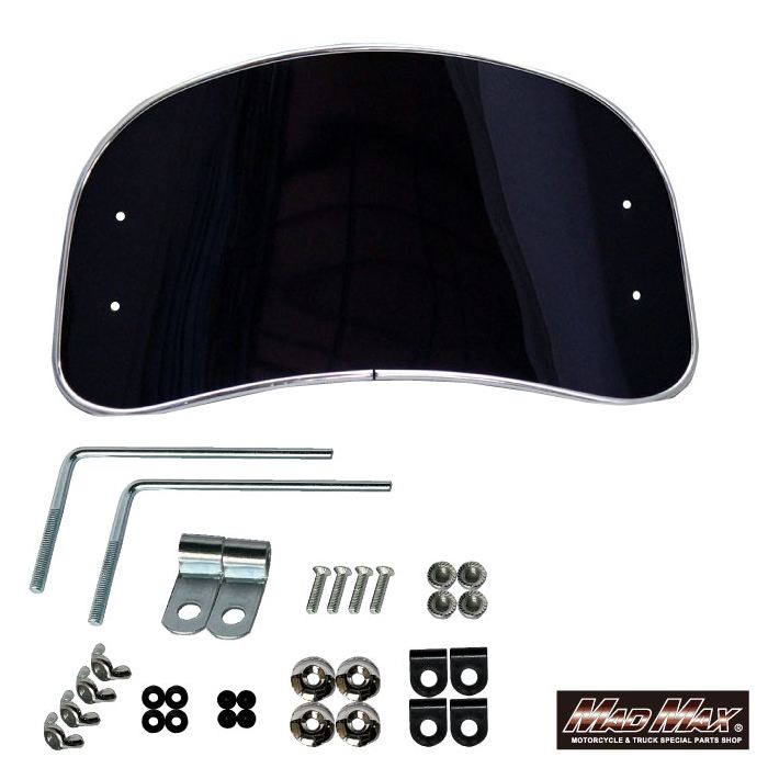 【マッドマックス MM19-0425-SV 風防ミドルサイズ スモーク/メッキ 縦225×横415×厚み3mm 汎用 スクリーン シールド 防寒 外装 MADMAX】