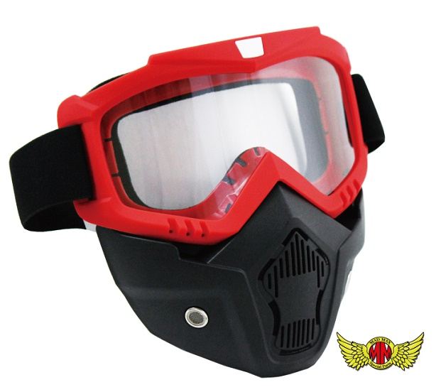 オートバイ用 マスク&ゴーグルセット レッド/クリアレンズ 縦185×横190mm