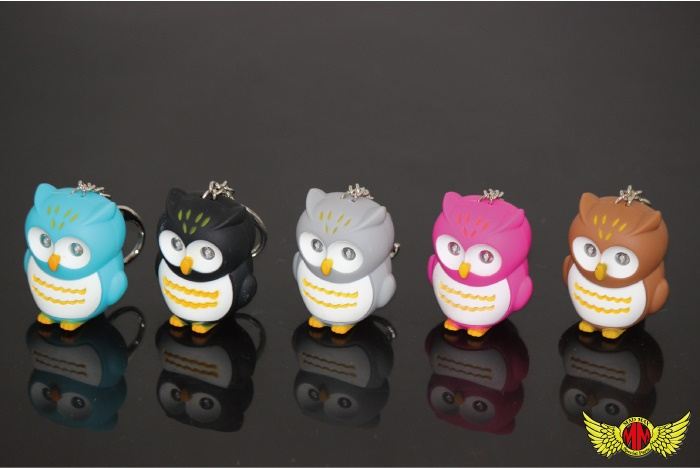 アニマルキーホルダー 鳴くフクロウ LED付き グレー 縦43×横36×奥行28mm 1個