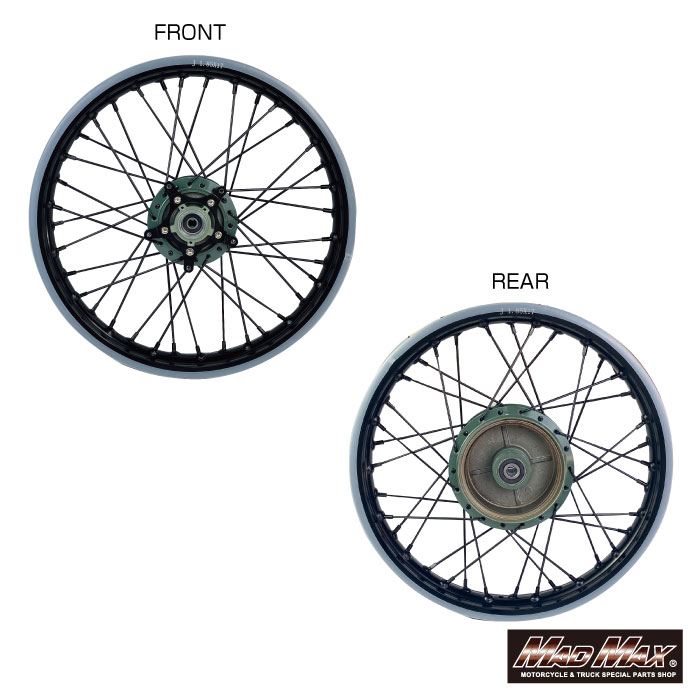 【マッドマックス MR19-CC21-GN MrQuick製 17インチスポークワイドホイールセット グリーン クロスカブ110 ドレスアップ MADMAX】