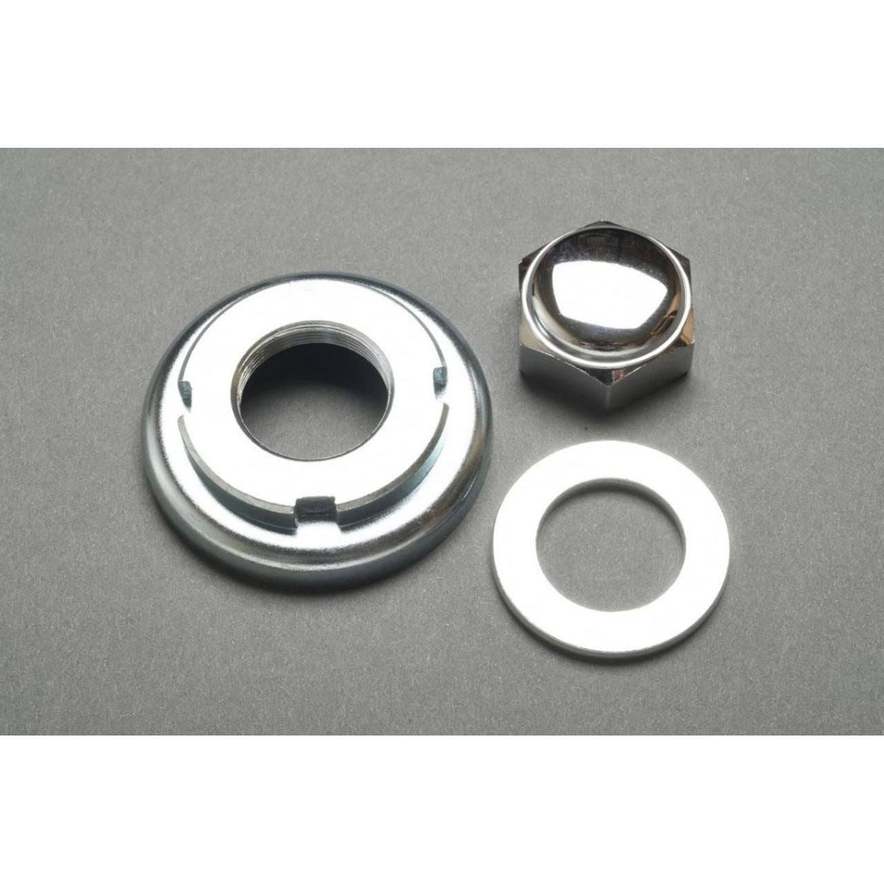 ステアリングステムナット、ステアリングステムワッシャー、ステアリングヘッド、トップスレッド(ステムシャフト固定用)の1セット。