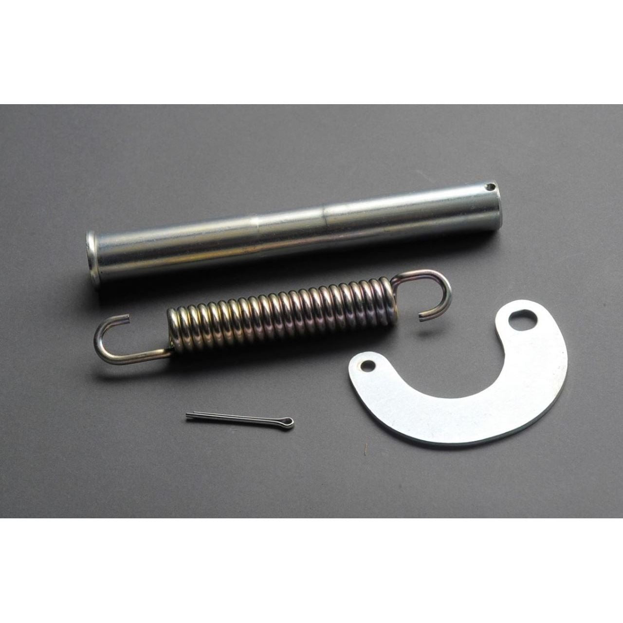 マウントパイプ、割りピン、スプリング、スプリングプレートという1台分のセット。