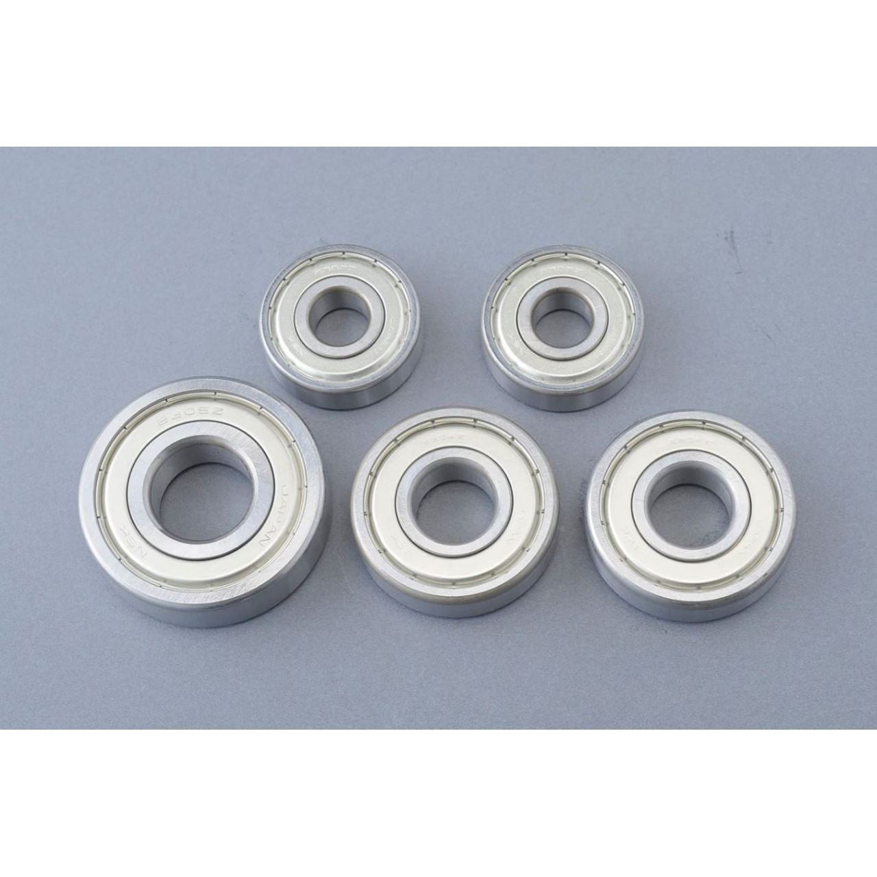 フロントハブの左右2個、リアはスプロケットハブに使用されるものも合わせて3個。