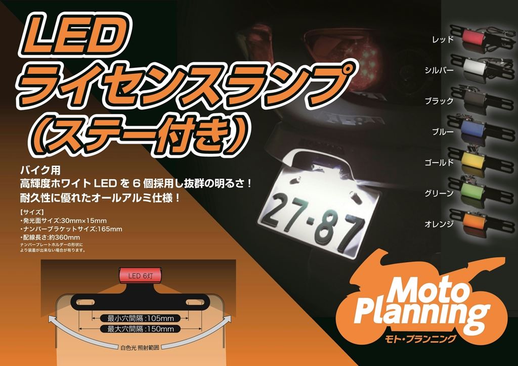 【モトプランニング 300-000-006 LEDライセンスランプ ステー付き グリーン 30×15mm 汎用 ライト ナンバープレート カスタム パーツ】
