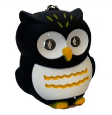 鳴くふくろうキーホルダー LEDライト付き ブラック