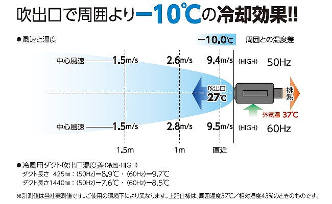 冷風ダクト長さ(m):0.425(最小)/1.5(最長)