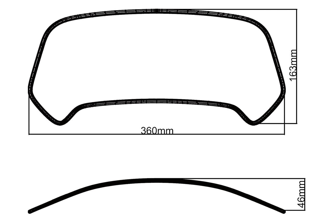 ■商品説明 エクスクリーンツーリングは、純正スクリーンやMRAスクリーンに装着できる大型の汎用可変式スポイラーです。 プラスアルファの風防が欲しい方やシチュエーションによって整流効果を調整したい方におすすめです。 2種類のヒンジ(シングル/ダブル)が付属し細かな高さ・角度調整が可能です。 アドベンチャーやツアラータイプのバイクに最適。 ■適合車種 汎用(ユニバーサルモデル) ■仕様 タイプ:エクスクリーンツーリング カラー:クリア サイズ:幅360×長さ163mm 厚み:3mm 材質:アクリル 仕様:グラデーション無し 付属品:Dタイプヒンジ、Sタイプヒンジ、穴あけ加工用位置決めシート ■注意事項 ※画像はイメージです。サイズ、カラー違いの商品を含みます。製品のデザインや仕様は予告なく変更することがあります。ご了承ください。 ※MRAスクリーンモールの取り付けはできません。 ※別売のクリップ式マウンティングキット(XCC-1)を使用する事により、穴あけ不要で取付可能。穴あけ式、クリップ式どちらの取付方法の際も取付部分が270mm以上の横幅のスクリーンに取付可能。クリップ式で取付の場合、厚さ7mm以下までのスクリーンに対応。 ※取り付け対象のスクリーンの形状(湾曲具合)や周辺パーツとの位置関係によっては、取付けができない場合があります。