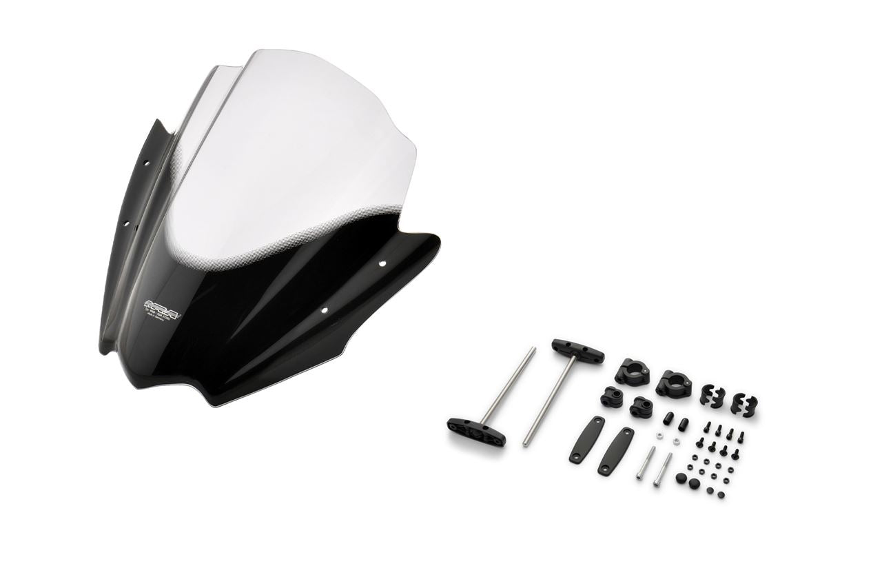 スクリーンセット バーハンマウントキット付 φ22.2/25.4用 レーシングネイキッド スモーク 幅380×長さ390mm 汎用