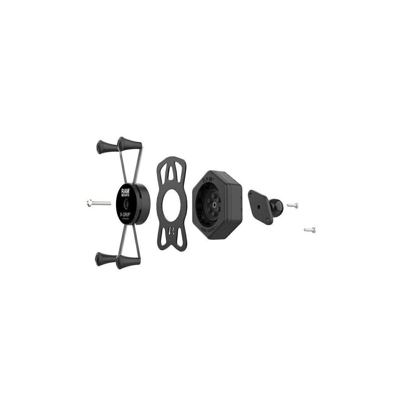 振動低減機構【Vibe-Safe】を搭載したラムマウントのフラグシップスマホホルダー「Xグリップ」Mサイズのマウント部単品。