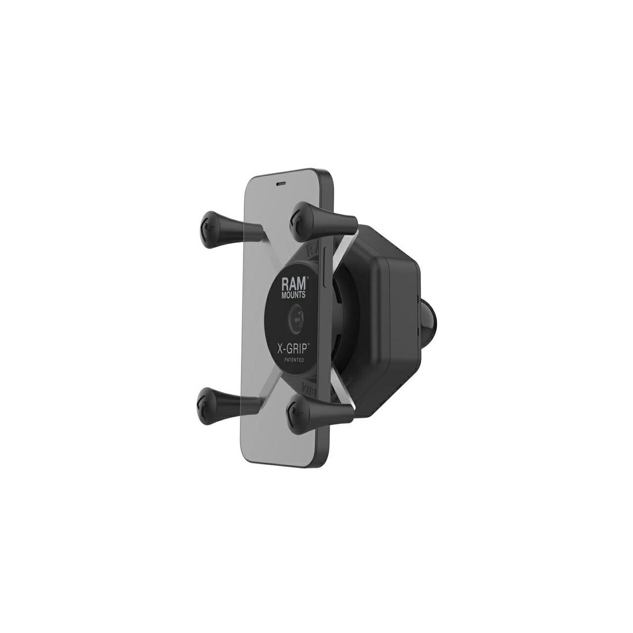 スマホケース付きの端末でもしっかりとホールドする特徴的なXデザインを採用したRAM MOUNTSを代表する「Xグリップ」タイプ。