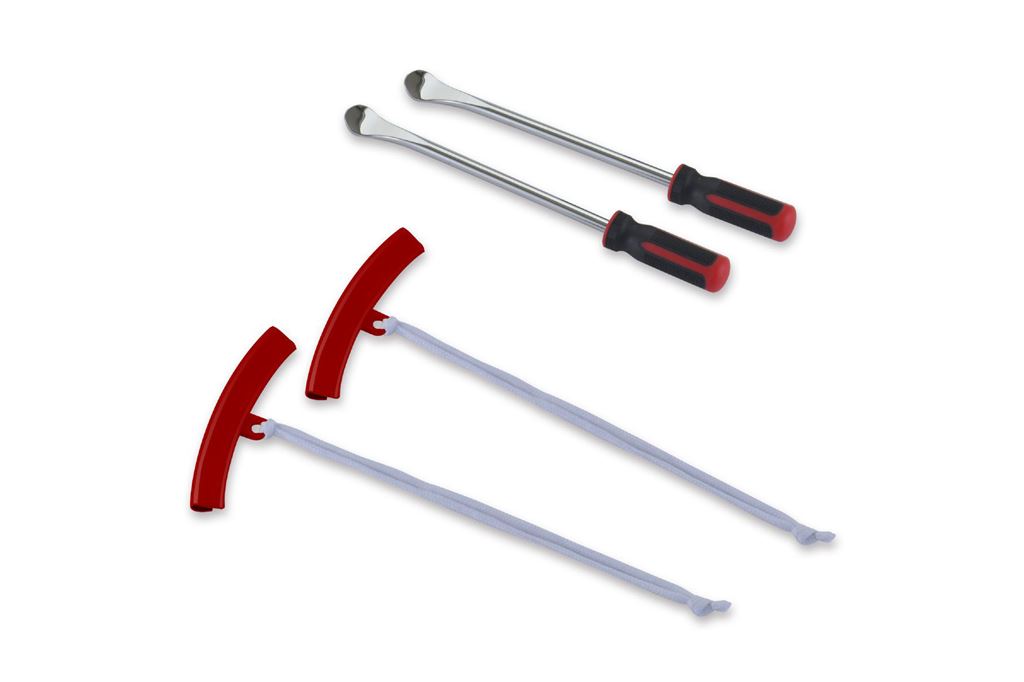 ■オートバイのタイヤ交換に特化したタイヤレバーと作業時に大切なホイールへの傷を軽減する安心の薄型リムプロテクターとのセット。