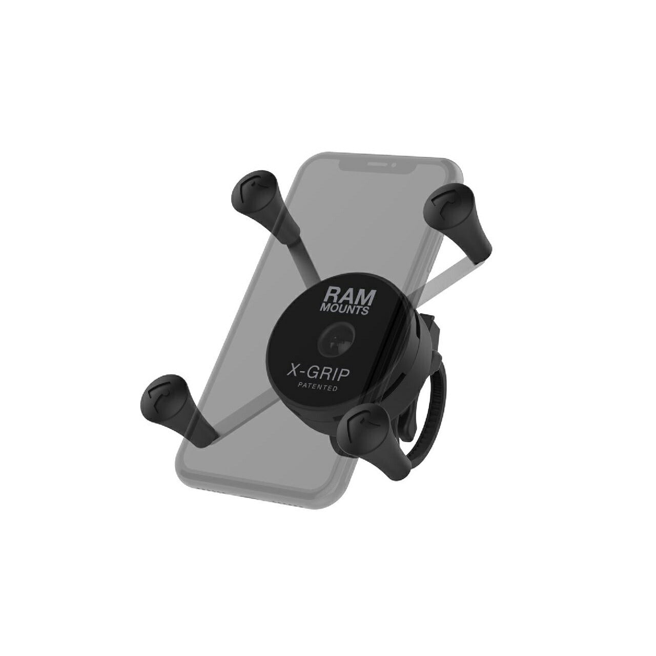 ラムマウントを代表する汎用スマホホルダー「Xグリップ」のSサイズを自転車のハンドルへ結束バンドで取り付け可能なマウントセット。アーム部を廃しコンパクトにまとまった一体式。