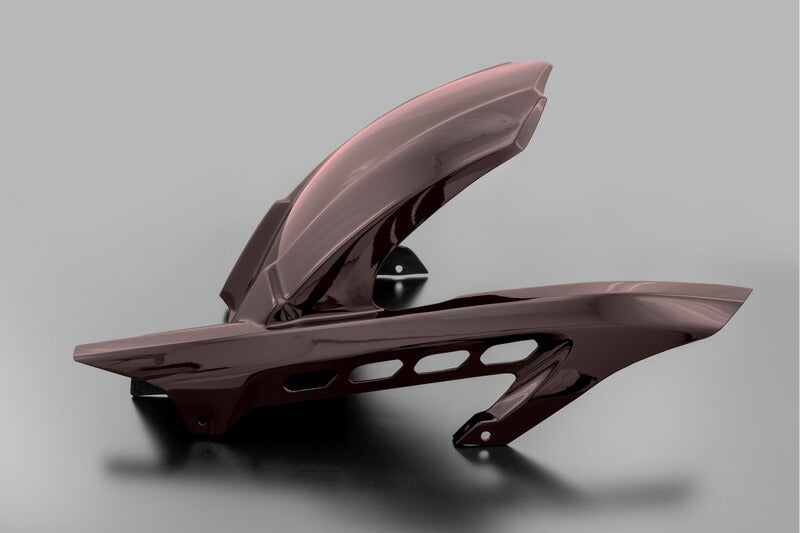 ・STDのチェーンカバーを兼ねたデザインを踏襲しながら約120mm後方に延長することで、泥跳ねや水撥ねを大幅に軽減すると共に、 テールカウルとタイヤとの「隙間感」を無くす事で、より一層攻撃的でレイシーなリアビューを飾り上げます。
