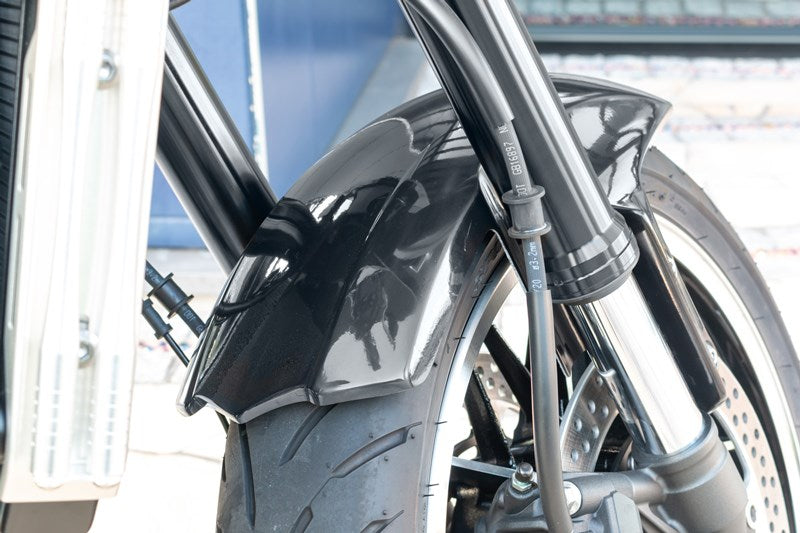 ・Z900RSのフロント周りをレーシングなイメージへ変貌させるフロントフェンダーの登場です。