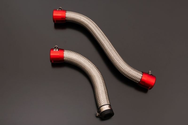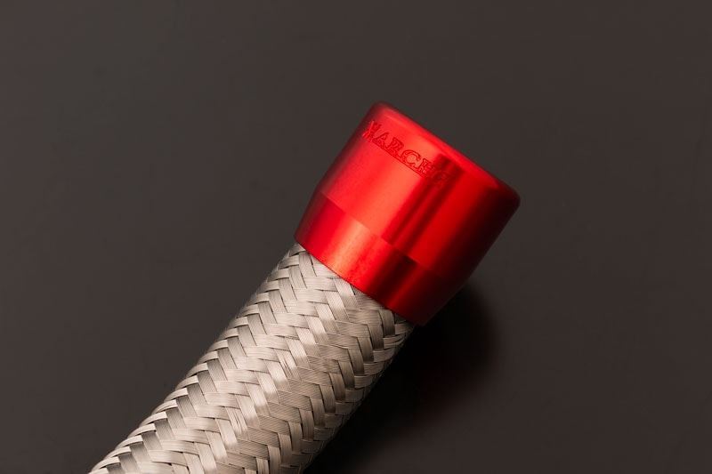 カラーアルマイトを施されたアルミECONO-FITと結合される「ステンレスメッシュチューブ」は、エンジン周りの圧倒的なドレスアップ効果と同時に、耐圧性と耐久性を向上させます。
