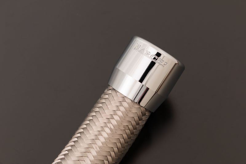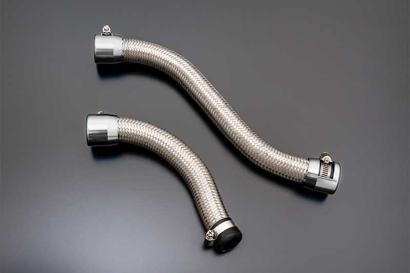 カラーアルマイトを施されたアルミECONO-FITと結合される「ステンレスメッシュチューブ」は、エンジン周りの圧倒的なドレスアップ効果と同時に、耐圧性と耐久性を向上させます。