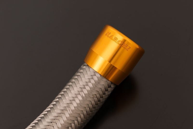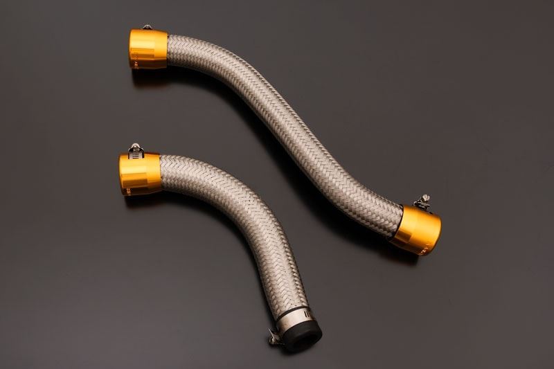 カラーアルマイトを施されたアルミECONO-FITと結合される「ステンレスメッシュチューブ」は、エンジン周りの圧倒的なドレスアップ効果と同時に、耐圧性と耐久性を向上させます。
