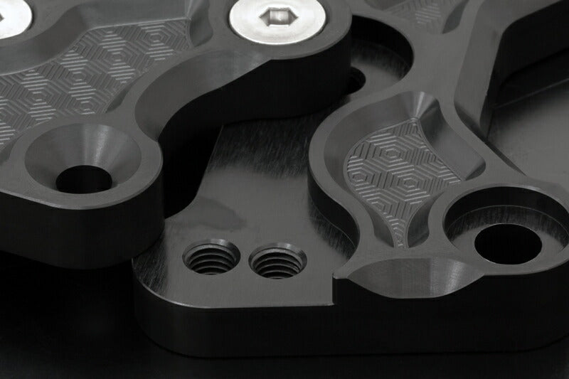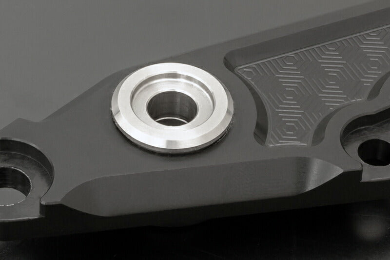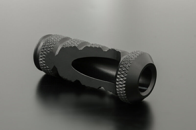 ・ステップバーの裏側を大胆な切削加工によって軽量化を図り、またすべり止め効果を高めるローレット加工とバーエンド部を大径化することにより、フットポジションを安定化させ、確実な操作感とホールド感を実現。