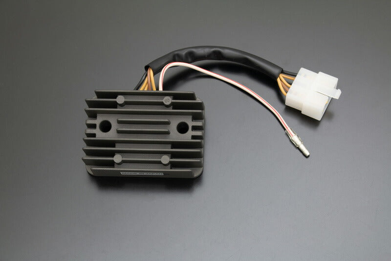 ・MFバッテリーにも対応した、レクチファイアー機能内蔵の高性能ICレギュレター。ジェネレター本体の発電量と車体側の消費電力量に応じ、過充電を制御しながら最適な電圧と電流を配電します。
