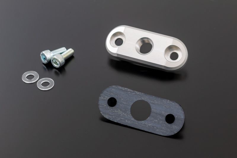 PINGELハイフローコックシリーズの装着に必要となるアルミ製アダプタープレート。