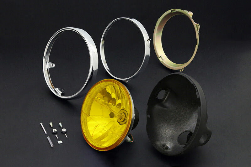 ヘッドライト 旧カワサキ系用/ブラックケース&リム付 イエロー ラウンドタイプ
