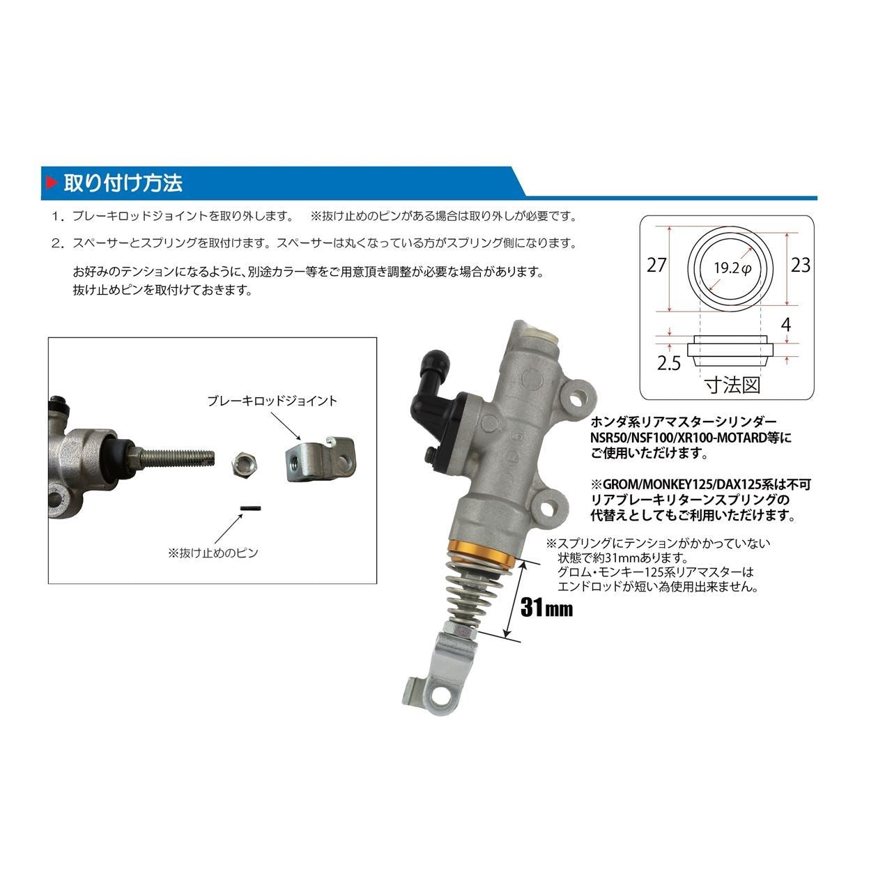 HONDA系リアマスターシリンダー(NSR50/NSF100/XR100モタード等)にご使用頂けます。