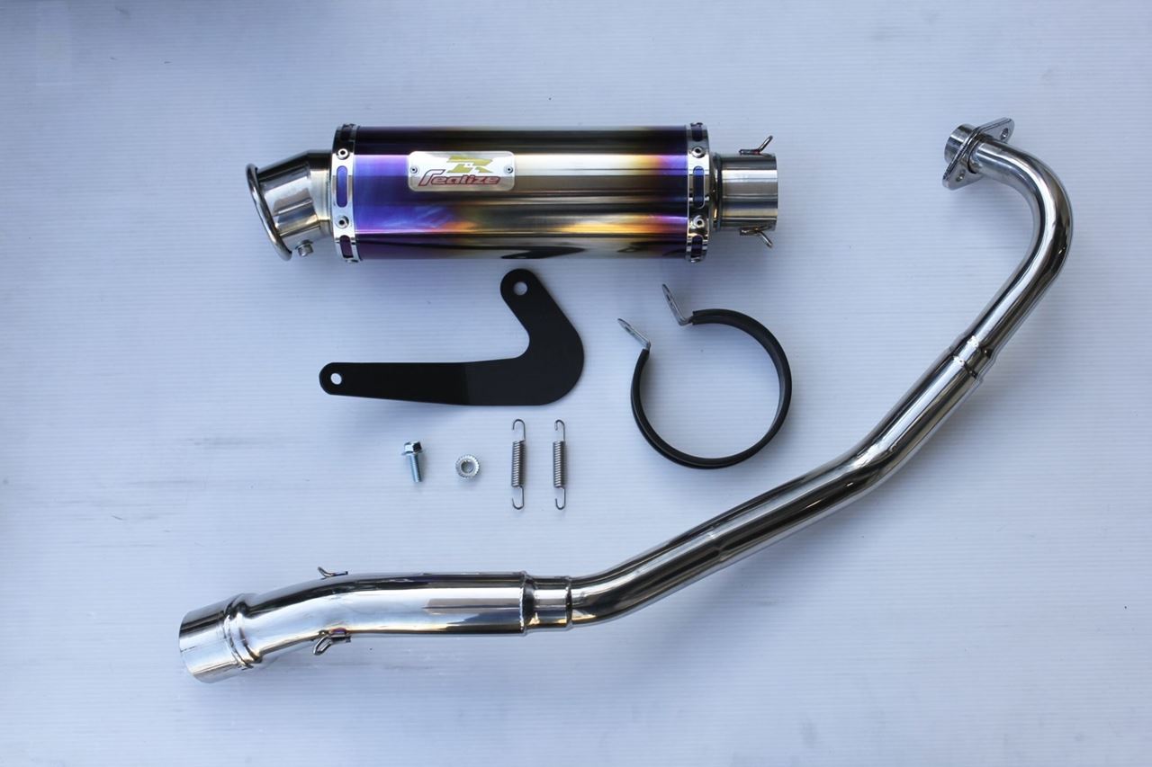 ■商品説明 軽量でかつスタイリッシュなスリップオンマフラー 4ミニ用マフラーにチタンサイレンサータイプがラインナップしました。 各車種、専用設計のエキパイはレーシングムード漂う3ピース構造。メンテナンスを容易にすることはもちろん、振動による割れ対策にも一役買っております。各パイプのジョイント部分には、ステンレス製のスプリングを使用し、ジョイント部の接合を確実な物にしております。また、フロントエキパイに34φ、リアエキパイに42.7φを採用しておりますので、ボアアップエンジンにも十分対応できる容量となっております。 SUS304・ステンレスを使用し手曲げ風、焼け色仕上げを施しました。サイレンサーシェルには、グラデーションカラーが鮮やかなチタンを使用し、入口・出口にはステンレスを使用し、経年変化にも強い仕様となっております。標準でステンレス製の音量調節バッフルを装備しておりますので、公道・サーキットと使い分けていただけます。 仕様 サイレンサー (全長約400mm) シェル部分:チタン 90Φ×250L シェル以外の部分:ステンレス ポリッシュ仕上げ 出口形状:60.5Φ 2Pカール仕様 (標準装備バッフル 57.5Φ) 差込部分:50.8Φ 両側フック固定仕様 エキパイ ステンレスポリッシュ仕上げ フルエキゾースト仕様 両側フック固定仕様 その他 音量:バッフル装着時 約90db(着脱可)車種によって異なります。 音質:重低音 タイプ:ダウンタイプ ■適合車種 モンキー125 対応型番:2BJ-JB02/8BJ-JB03 付属品: サイレンサー ×1個 エキパイ × 1個 サイレンサーバンド90Φ用 × 1個 バッフル(標準装備) × 1個 専用ステー × 1個 フランジ付きボルト M8×20 × 1個 ナット M8 × 1個 スプリング Sサイズ × 2個 ステッカー ×1個