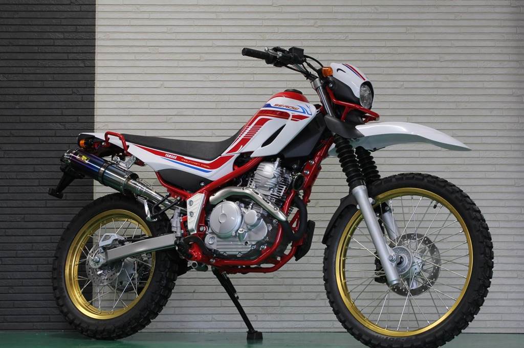 ■商品説明 スリップオンマフラー「アリア」は、エキパイにSUS304を使用し、ポリッシュ仕上げにて高級感を施し、サイレンサーにはチタンとステンレスの2種類に、エンド違いの4種類をラインナップいたしました。サイレンサー内部はSUSウールとグラスウールの二層巻きとし、グラスウール飛散による、音量の経年変化を極力抑えた仕様となっております。 DYNOJETによるパワーチェックを繰り返し、ノーセッティングにてベストパフォーマンスを発揮する様、製作しました。 音量調節バッフル・標準装備。取り付けに必要なボルト類も付属致しております。 仕様 材質:サイレンサー部=チタン エキパイ部=ステンレスポリッシュ仕上げ サイズ:100φ×全長約450mm 筒長:340mm 仕様:スリップオン 音量:バッフル装着時 約94db以下(着脱可) 音質:低音 タイプ:タイプS(スラッシュエンド) ■適合車種 セロー250 対応型番:2BK-DG31J