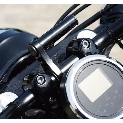 スマホ、ETC、各種ガジェット、ドリンクホルダー等の取付けに便利なΦ20〜Φ28.6mmバー対応の、 L字型のシンプルなバーマウントアイテムです。