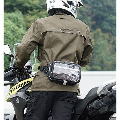 バイク乗車時は8inまでのデバイスが収納可能なNAVIタンクバッグとして、バイクを降りればウエストバッグとして使用できる、使い勝手がよくファンクショナルでファッショナブルな2WAYバッグです。