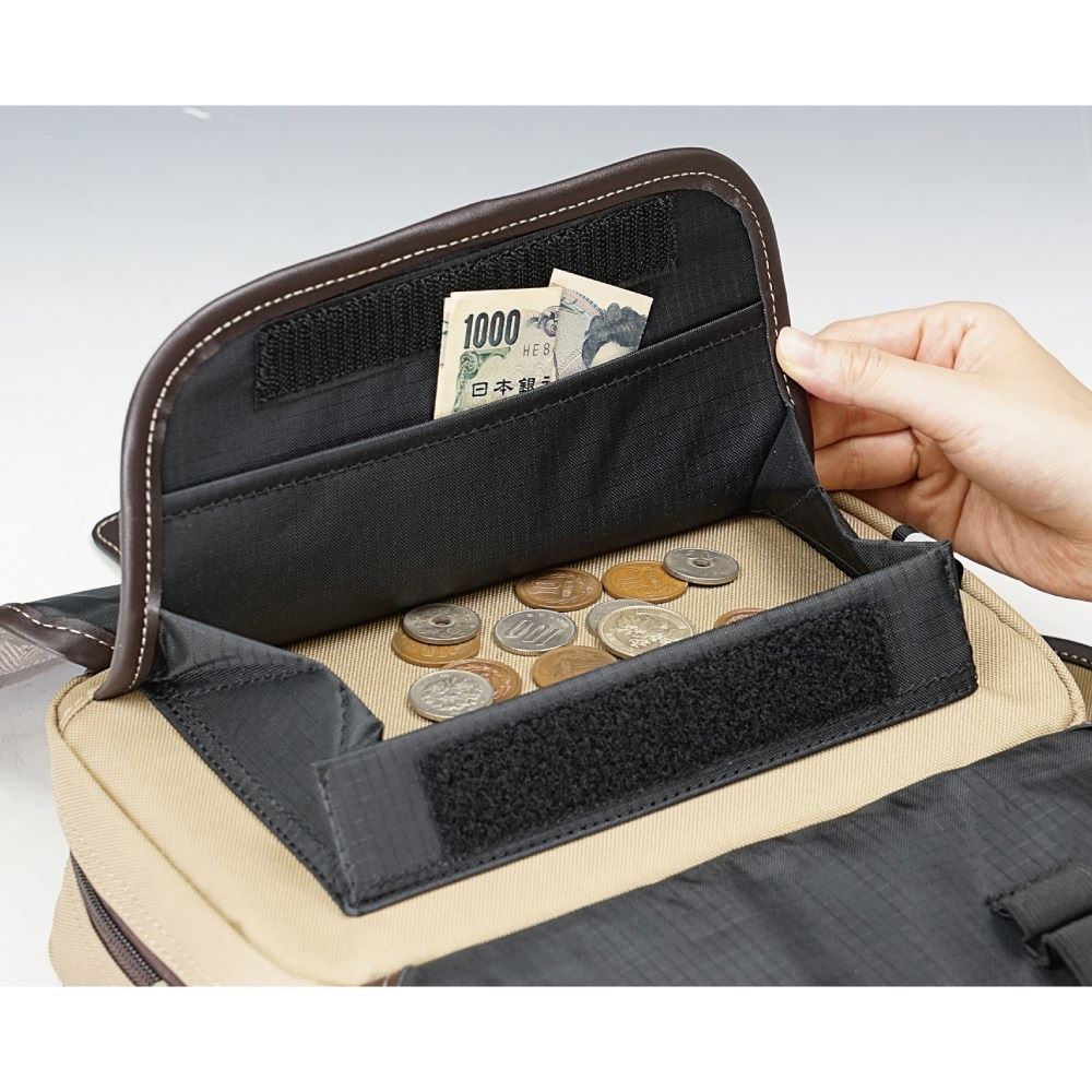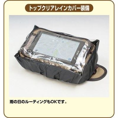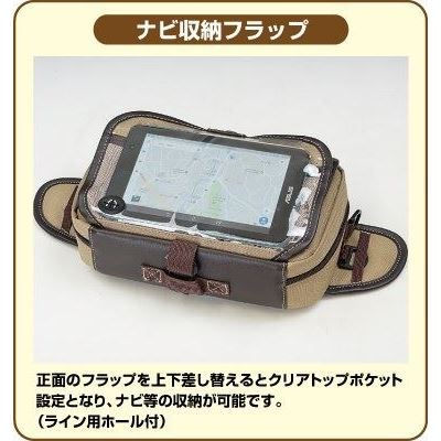 タンクバッグとして使用するときはフロント面をトップクリアのNAVIスペースにし、その下にグローブをしたままでもコインの取扱のし易い大きなコイン収納スペースを用意。