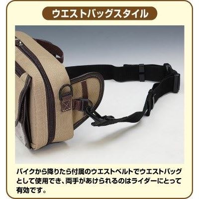 タンクバッグにもウエストバッグにもなる