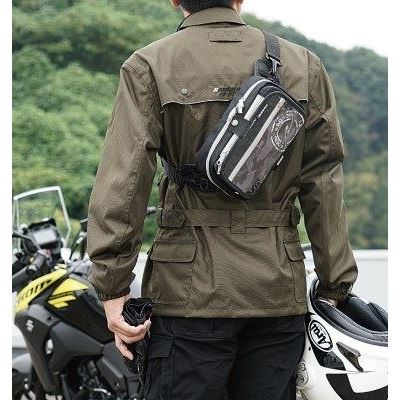 バイクを降りた後はフロント面を上下入れ替えることでウエストバッグに早変わり。シーンに合わせた使い勝手の良さが最大の魅力です。メインスペースにはカード収納スリット、ペン収納、小物ポケット、大型スリットとバッグ内の仕分けもし易い多彩なポケットを用意。身の回りの貴重品収納に最適です。トップクリアスペースのベース部分にカモ柄など個性豊かなデザインを施しました。