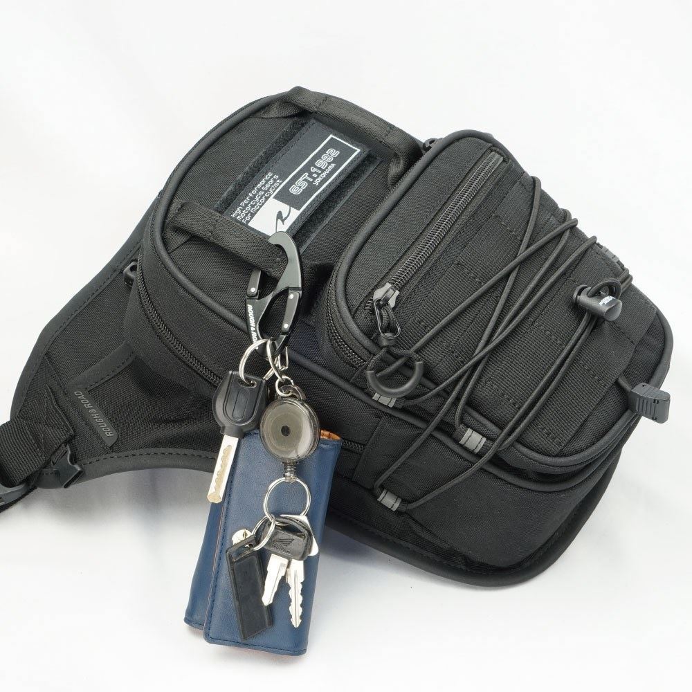内容量に応じて圧縮したり、走行時に飛散紛失しがちなキャップをばたつかないようホールドし紛失リスクを大幅に軽減するホールドコードをはじめ、ワンプッシュでオープン/クローズができる利便性の高いグリムロックカラビナを標準装備、片手でカラビナをかけられる大型カラビナループ、グローブホルダーなど、乗車時降車後にうれしい機能を備えました。