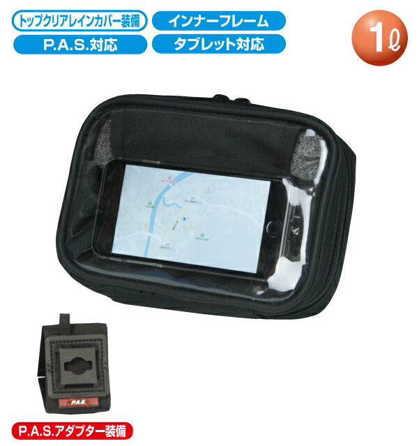 ・装着場所の自由度が高いP.A.S.アダプター対応のデバイスポーチ。レインカバー標準装備でリーズナブルに使えます。