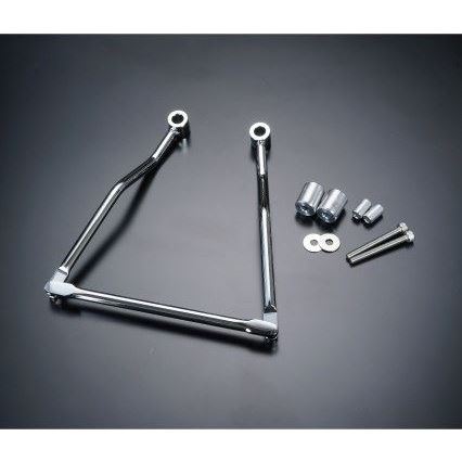純正ツールボックス取付ボルト部に専用カラーを挟むことでボックスを躱すオフセット取り付けが可能となりサイドバッグサポートとツールボックスの供用が可能。