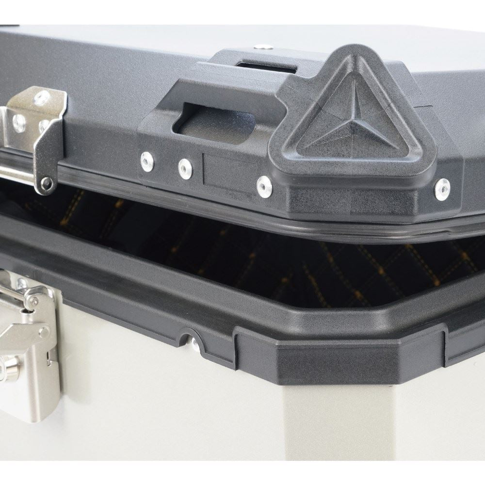 通勤デリバリー業日常使いからキャンプロングツーリングまで幅広く活躍するトップケースは、ハードユースに耐えうる性能を求められます。防水性を高めた開口部の構造、内面キルティングインナークッションで内容物を保護。取り付け汎用性のあるベースプレートを車体に装着した後は本体が容易に着脱可能であることはもちろん、開口部と着脱部分はキーロック仕様で車体から離れる際も盗難の心配がなく安心です。