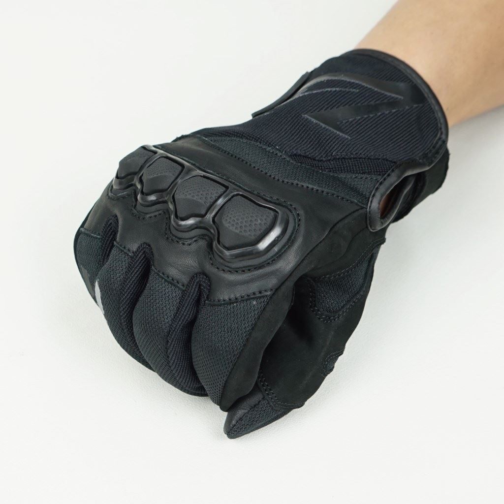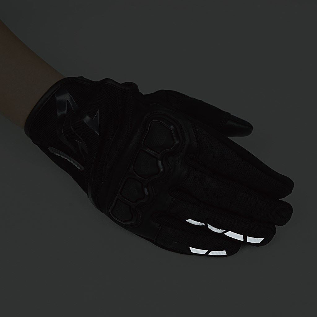 バイクグローブに求められる、プロテクション性(ナックルパッドや各所補強皮革)、被視認性(リフレクター)、利便性(スマホ対応指先)のほか、ストレッチ性や通気性などの基本的な機能を網羅した、ベストコストパフォーマンスモデル。